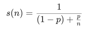 这个定律是计算机界的一个经验法则,它代表了处理器并行运算后效率的提升能力。理论最大加速比是通过下面这个公式计算而来的: